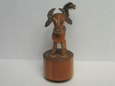 VINTAGE PUSH UP TOY WOODEN GOAT? COW? COLLAPSES MOVES