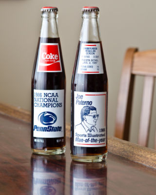 Title (ebay affiliate link): 2 Joe Paterno Sports Illustrated Man of Year 1986 NCAA Penn State Coke Bottles