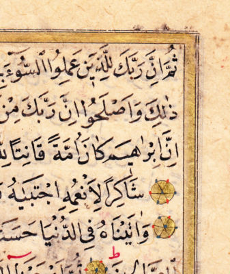 Two Leaves Beautiful Gold Ink Arabic Koran / Quran with Large Gold Ayat Circles