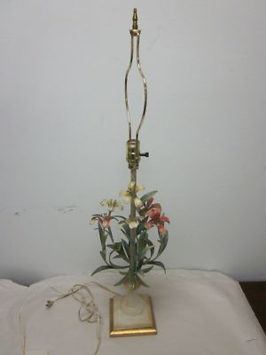 Title (ebay affiliate link): Vintage Italian Lily Tole Lamp. Wood and Alabaster base with original cord.