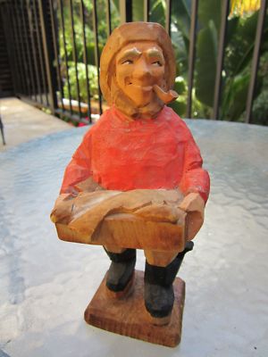Carved by hand in Norway 8" fisherman carrying 2 fish