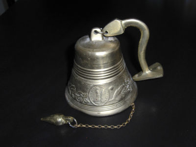 Brass Bell with Woman Kneeling & Flower Motiff - Antique