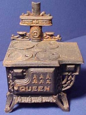 Title (ebay affiliate link): ESTATE CAST IRON QUEEN BRAND SALESMAN'S SAMPLE MINIATURE TOY STOVE 4" GREAT LOOK