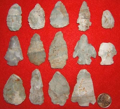 Title (ebay affiliate link): 14 Old arrowhead scraper blades Indian relics Indiana green artifact NR lot