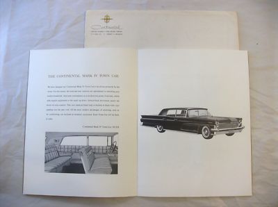 Title (ebay affiliate link): 1959 LINCOLN CONTINENTAL MARK IV TOWN CAR & MARK IV LIMOUSINE CAR AD BROCHURE