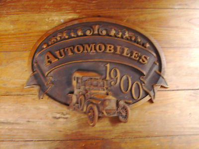 OLDER SIGN 'AUTOMOBILES' 1900...1909 ON CAR~WOODEN LOOK~BANNER~CAR SIGN