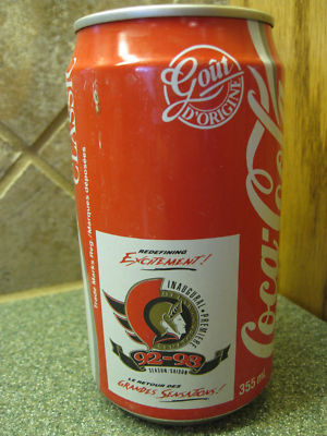 Coke cans Ottawa Senators inaugural season 92-93 Canada Coca-Cola