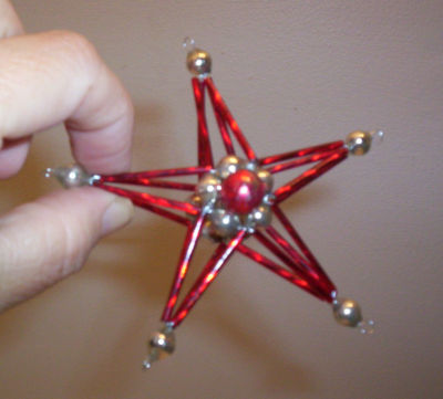 Title (ebay affiliate link): vintage mercury glass beaded STAR Christmas Ornament: RED and SILVER