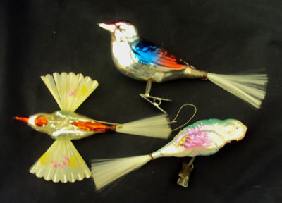 Title (ebay affiliate link): THREE LARGE GERMANY GLASS CHRISTMAS BIRDS w/ SPUN GLASS TAILS NR