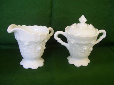 Fenton Milk Glass Sugar and Creamer Set w Rose Pattern