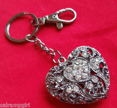 Title (ebay affiliate link): Antique Silver Chunky Heart Keychain clear crystal rhinestones