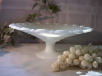 LARGE Laced edge milk glass Pedestal tray / cake plate