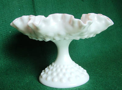 FENTON MILK GLASS HOBNAIL DOUBLE CRIMPED CANDY DISH