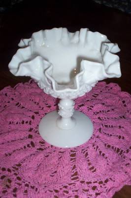 White Milk Glass Compote with ruffled edging see pic