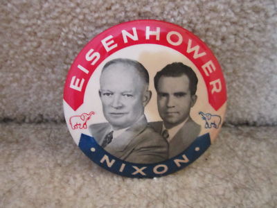 Title (ebay affiliate link): RARE VINTAGE EISENHOWER-NIXON POLITICAL CAMPAIGN PINBACK BUTTON 1960's COLLECTOR