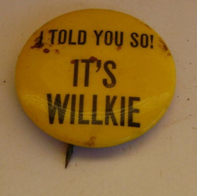 Wendell Willkie Presidential Political Pinback Button I TOLD YOU SO