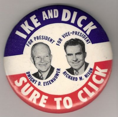 Title (ebay affiliate link): 1952 Eisenhower "IKE and DICK Sure To Click" Campaign RWB Celluloid Pinback