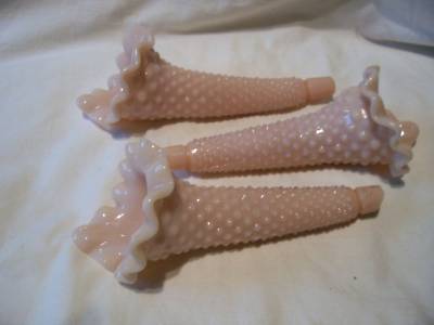 3 Vintage Pink Milk Glass Hobnail Epergne Horns-6 1/4"L