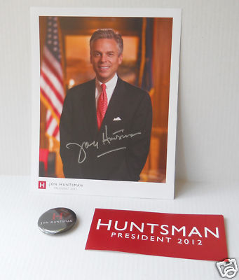 Title (ebay affiliate link): Jon Huntsman Signed Photo plus Bumper Sticker and Campaign Pin!