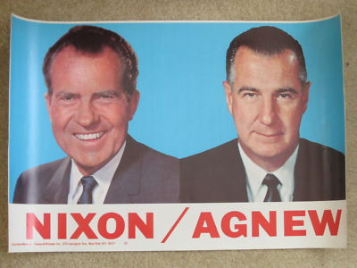 Title (ebay affiliate link): RARE 1968 RICHARD NIXON-SPIRO AGNEW POLITICAL CAMPAIGN POSTER 14" X 22" N.Y.N.Y.