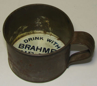 Brahmer Lowville NY Antique Tin Lithograph Advertising Mug Very Rare Primitive