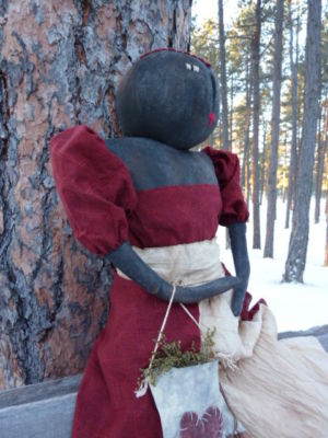 PrimitivE FolK ArT Black Doll With Heart In Hand ValentinE purse VERY Sweet
