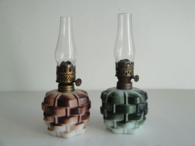 2pcs Milk Glass Miniature Oil Lamp Basketweave S 276