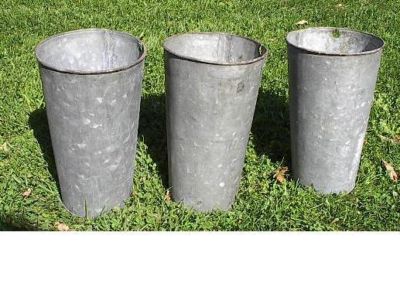 Title (ebay affiliate link): VINTAGE Maple Syrup 3 Galvanized Sap Buckets ORIGINAL OLD Great Flowering DECOR