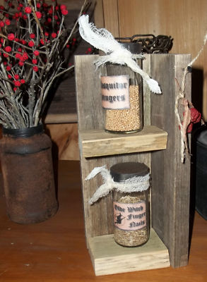 Title (ebay affiliate link): Primitive HALLOWEEN Witch OLDE BARN WOOD Shelf 2 POTION BOTTLES FILLED!