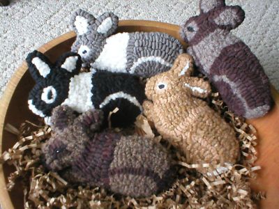 Title (ebay affiliate link): PrimiTive Folkart Hooked Rug Bunny Pattern Crafts, Sampler, Bowl filler