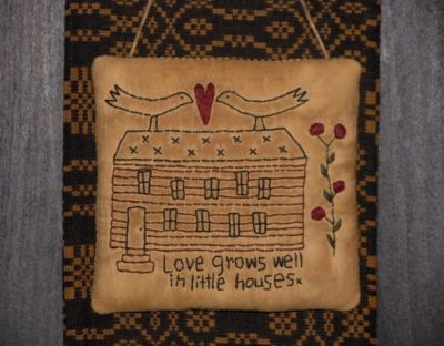 Primitive Stitchery Hanger ~ Love Grows Well in Little Houses ~ Heart and Birds