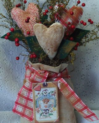 Title (ebay affiliate link): PRIMITIVE VALENTINE HEART FLOWERS (3) IN POUCH PIPBERRIES SWEET ANNIE RUSTY BELL