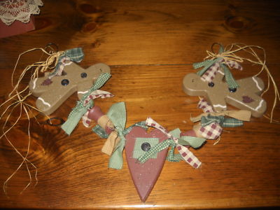 Title (ebay affiliate link): Primitive 24.5in. Gingerbread Man and Heart Garland/Shelf Hanger Cute