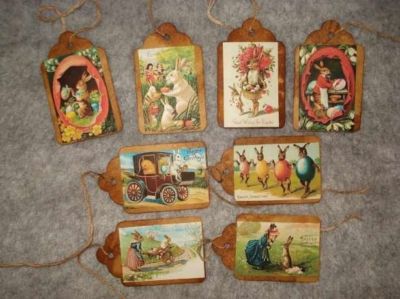 Title (ebay affiliate link): PRIMITIVE EASTER HANGTAGS 8 med. VINTAGE EASTER BUNNY TAGS w/ COTTON TIES F/SHIP