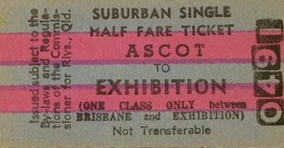 Railway ticket Queensland Ascot Exhibition economy unused half fare single