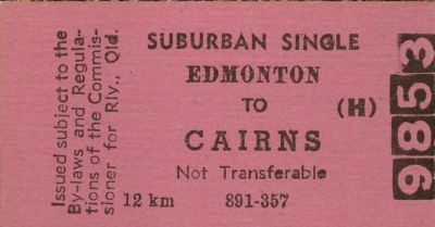 Railway ticket Queensland Edmonton Cairns suburban economy unused adult single