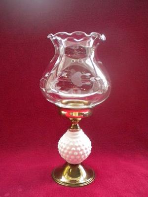 HOBNAIL MILK GLASS & BRASS OIL LAMP PRINCESS HOUSE