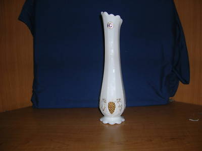 WESTMORELAND GLASS PANELED GRAPE MILK GLASS BUD VASE NR