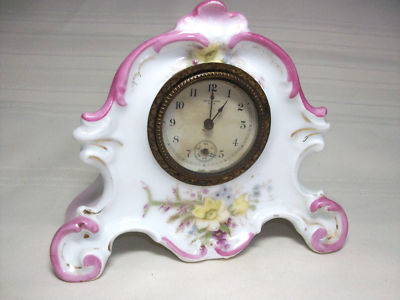 Title (ebay affiliate link): 7" GERMAN PORCELAIN SMALL SHELF CLOCK - FLORAL DECORATION