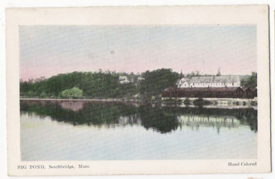 HC ~ SOUTHBRIDGE, Mass., Big Pond w/ buildings & houses. Handcolored Unused Exc