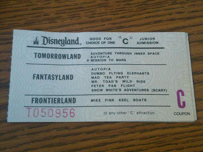 Original Disneyland C Ticket - Child Admission (1970s)
