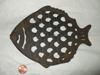 Title (ebay affiliate link): Antique Vintage Cast Iron Fish Shaped Ornate SAD Iron Trivet Resting Plate Japan