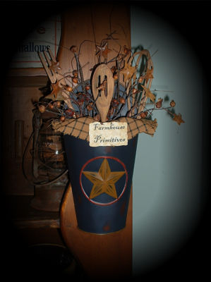 Title (ebay affiliate link): Early Primitive Farmhouse Gathering Star Bucket-Prim Utensils Rusty Stars n Pods
