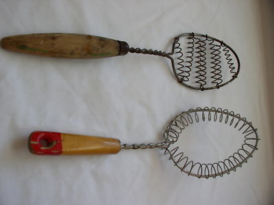 Title (ebay affiliate link): ANTIQUE PRIMITIVE FOLK ART KITCHEN UTENSILS STRAINER & WHISK SET OF 2