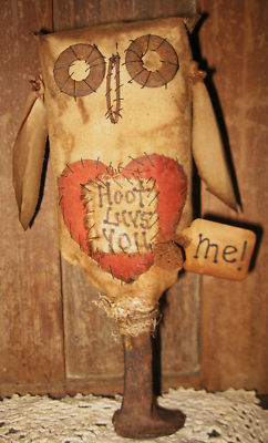Title (ebay affiliate link): PRiMiTiVe VaLeNtiNe OwL/RuStY SpiKe/HoOt LuVs YoU...Me!