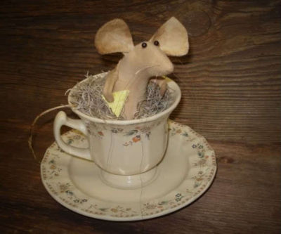 Title (ebay affiliate link): PRIMITIVE FOLK ART HANDMADE COUNTRY MOUSE ORNIE DOLL VINTAGE TEACUP GATHERING