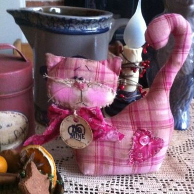 Title (ebay affiliate link): Primitive Valentine Kitty Cat Doll Shelf Sitter Ornie OOAK Plaid Pussy Cat