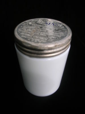 vintage milk glass RESINOL MEDICINE JAR bottle pharmacy metal lid advertising