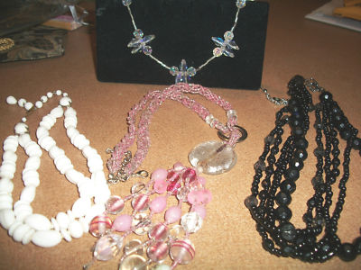 Title (ebay affiliate link): Vintage LOT of 4 necklaces Milkglass Crystal Glass Old & New mix