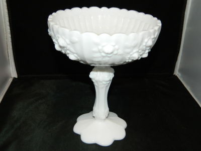 Title (ebay affiliate link): Fenton Milk Glass Footed Compote Raised Roses & Leaves Pattern